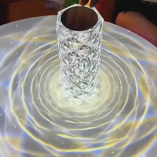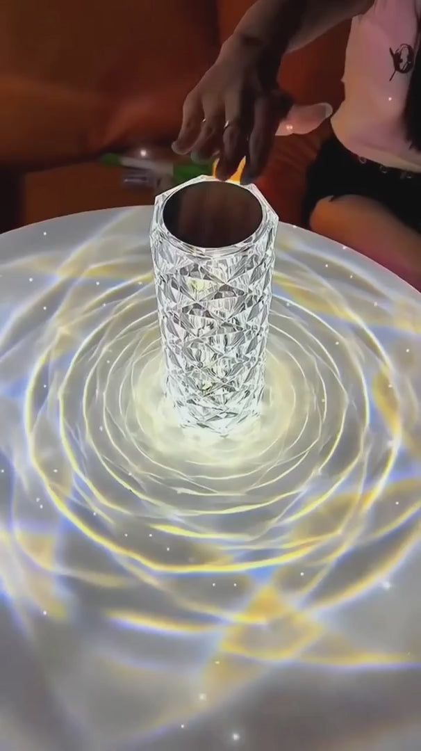 LED Crystal Table Lamp – A stunning rechargeable lamp with a faceted crystal-like design that casts beautiful light patterns, available in multiple color modes for an enchanting atmosphere.